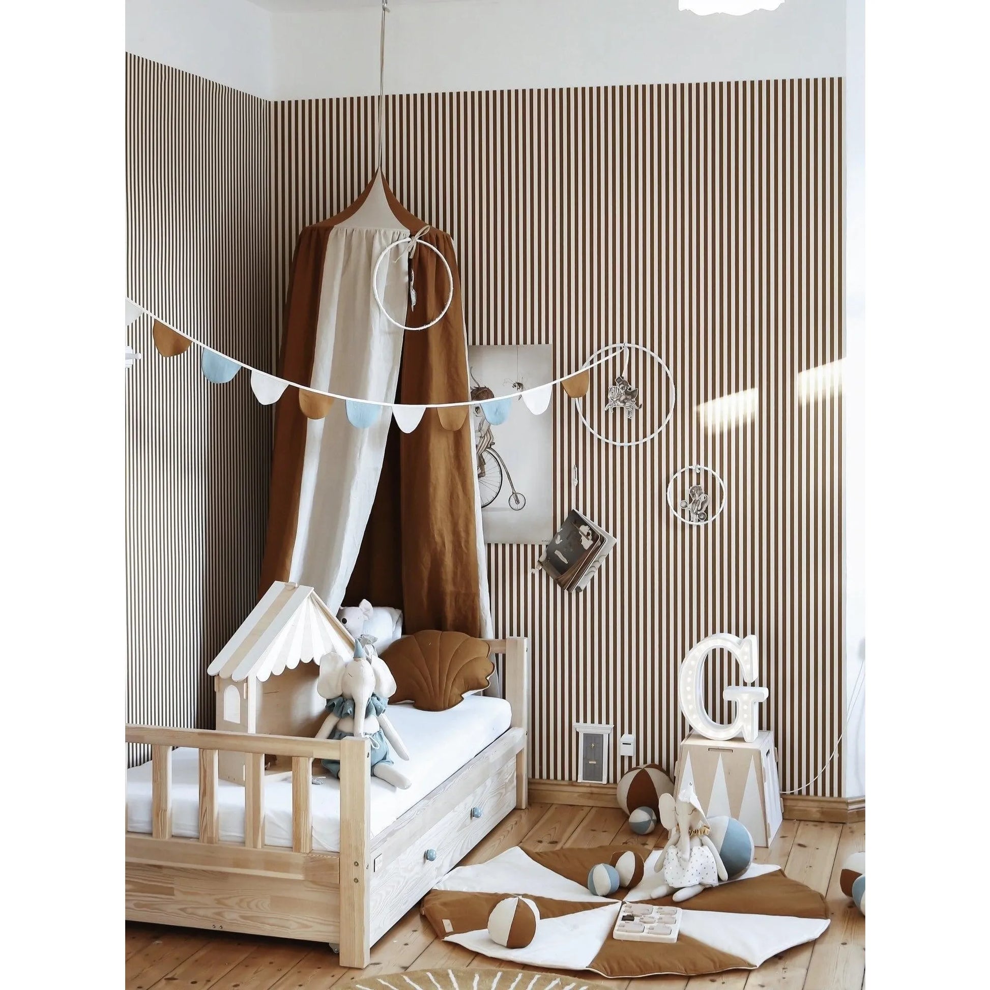 🌟 Questo tappetino rotondo, realizzato in lino e cotone di alta qualità, è un complemento perfetto per la cameretta dei bambini. È cucito con cura da pezzi di lino color caramello scuro e cotone grezzo naturale, che gli conferiscono un aspetto unico. Grazie alla sua resistenza e al design double-face, è ideale per i bambini più grandi che possono utilizzarlo come area giochi o elemento decorativo nella loro cameretta.