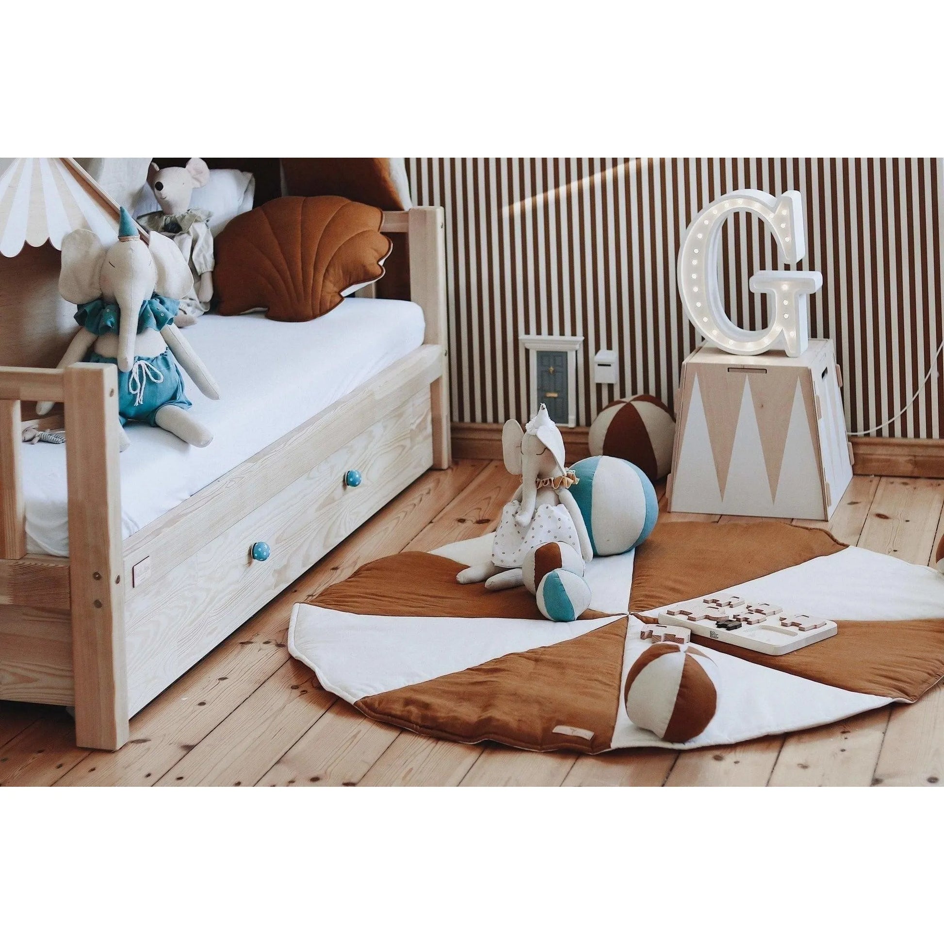 🎪 Entra in un mondo di divertimento e avventure con il nostro tappetino ispirato al circo, il compagno perfetto per ogni piccolo esploratore. Questo fantastico pad non è solo un accessorio elegante, ma anche un pratico aiuto per ogni avventura. Che tu stia pianificando lunghe riunioni nel teepee o abbia bisogno di qualcosa di comodo per un picnic in giardino, il nostro pad è qui per offrirti il massimo comfort.